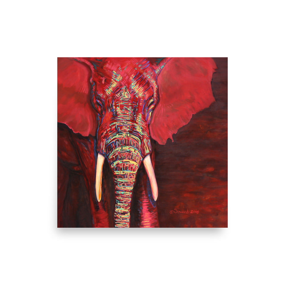 The original elephant painting is 36x36 inches and these prints retain that ratio. Excess paper can be trimmed away to suit your framing and display needs once you receive the print.